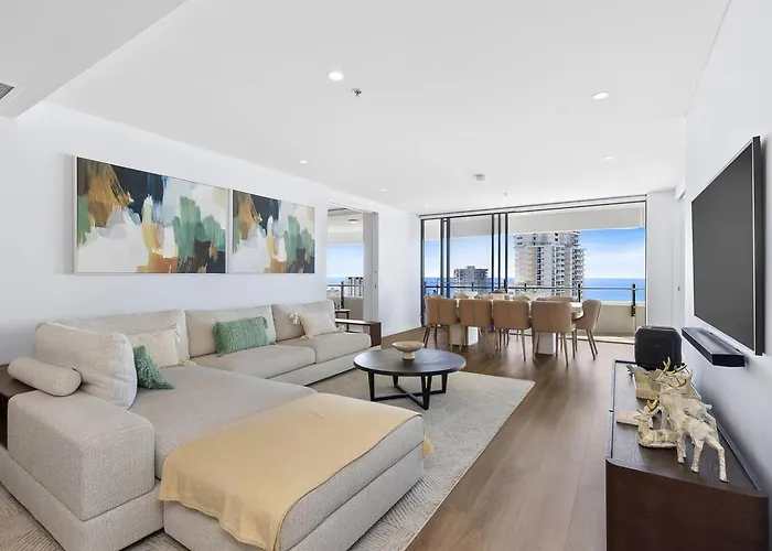 ゴールドコースト・コンベンション&エキシビションセンターから徒歩で5分の場所に位置する寝室2室のゴールドコースト2202 Luxury The Waveアパートメントからは、周辺のさまざまな観光スポットへ行きやすいです。 ザ・スター・ゴールドコーストすぐ近くに位置するこの100m²のアパートは、海の景色を見渡せるテラスを提供しています。